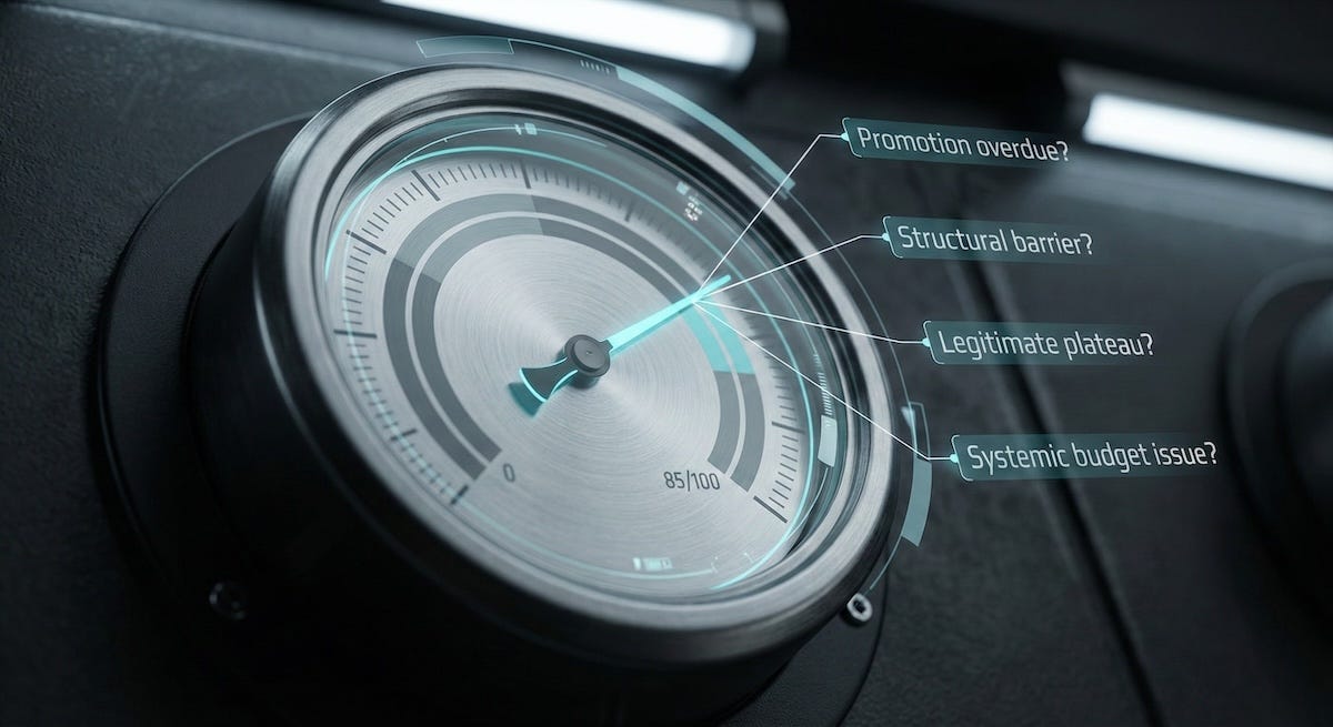 Perhaps there are structural barriers to advancement that the organization hasn’t addressed. The team doesn’t have the scope to demonstrate next-level impact. The promotion criteria are unclear. The manager hasn’t invested in development conversations. The model doesn’t answer these questions, but it ensures they get asked before the ceiling arrives and creates a crisis of misaligned expectations on both sides.